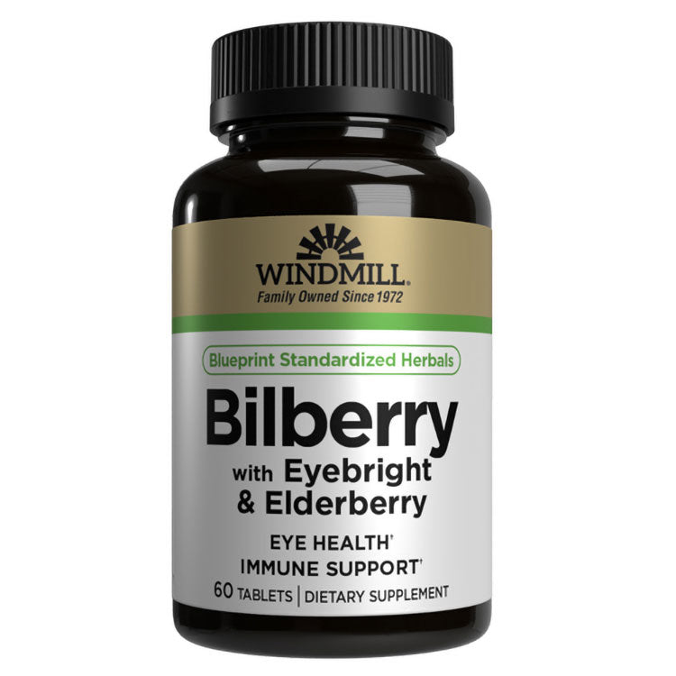 Windmill's Bilberry formula provides 5 mg of leaf and fruit extract along with Eyebright & Elderberry per tablet. Bilberry, a... Read more