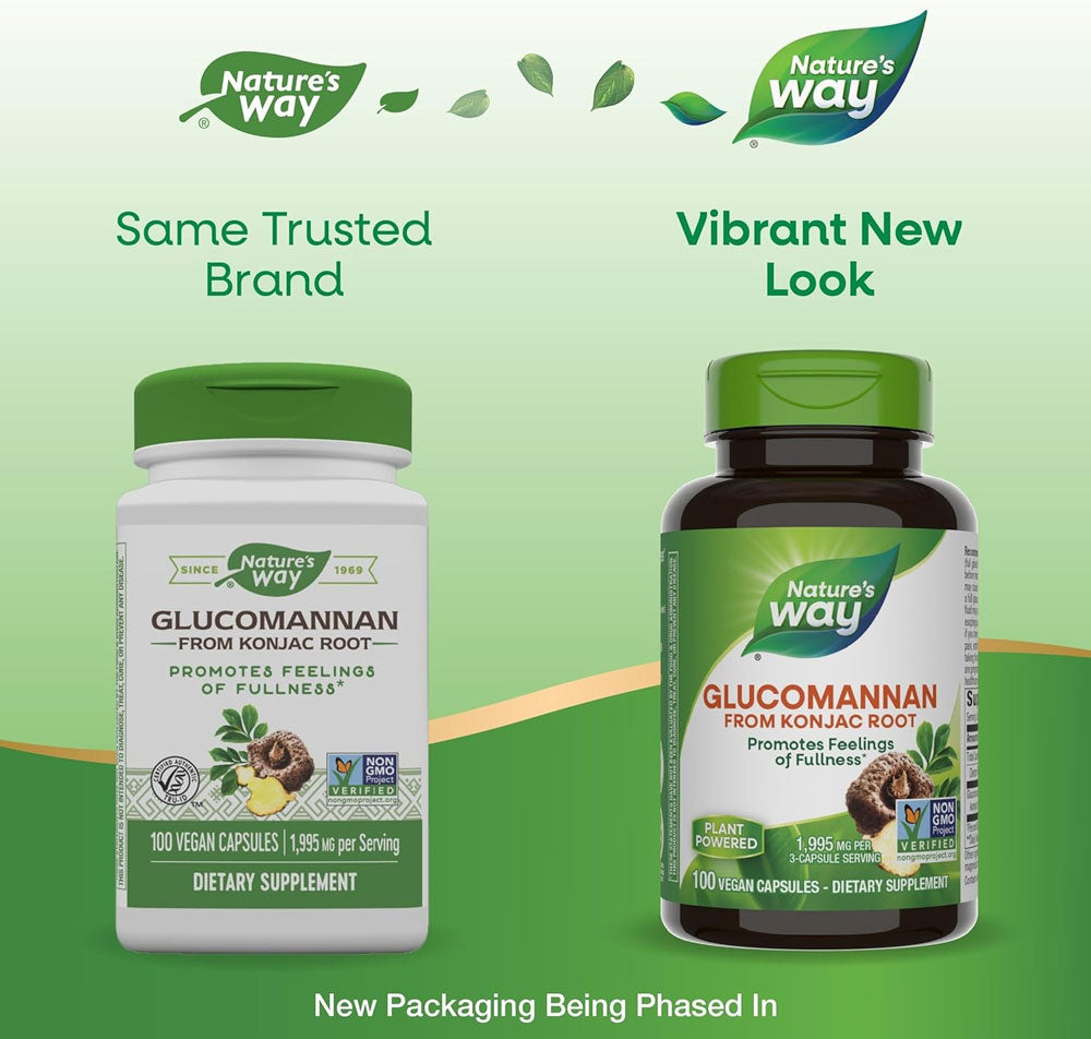 Nature’s Way Glucomannan is derived from the konjac, an herb also known as the elephant yam. The konjac plant is prized for its fiber-rich root, which has been used both in food and wellness practices. Glucomannan is found in konjac root and has been used to promote feelings of fullness.*