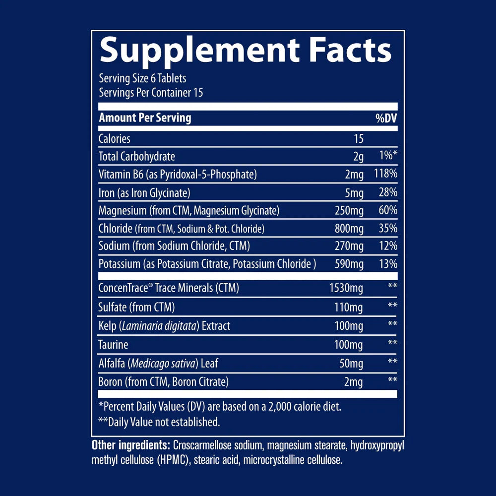 Ingredients: Vegetable cellulose, vegetable stearic acid, modified cellulose gum, vegetable magnesium stearate. Also includes over 72 ionic trace minerals found in seawater. CERTIFIED VEGAN.